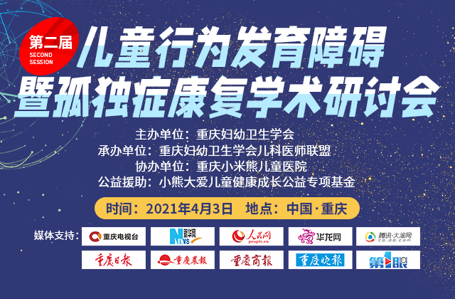 为了搭建一个开放的交流平台,分享我国儿童孤独症的诊疗经验,探讨儿童孤独症及行为发育异常疾病的诊断、治疗、心理辅导和康复方法,促进儿童孤独症的康复水平提高。在世界自闭症关注日(每年4月2日)来临之际,经过多方努力推动,定于2021年4月3日,在重庆小米熊儿童医院召开“第二届儿童行为发育障碍暨孤独症康复学术研讨会”。